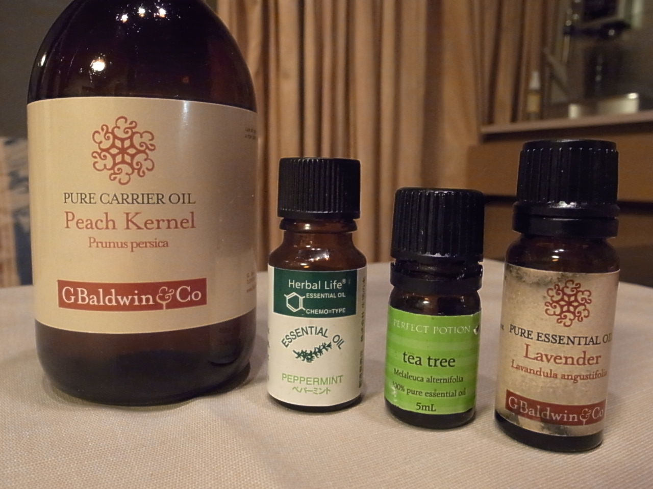 老人性の肌の乾燥がありましたので、ピーチカーネルをベースに直接原液を肌につけても大丈夫な精油(ラベンダー・ティートゥリー)